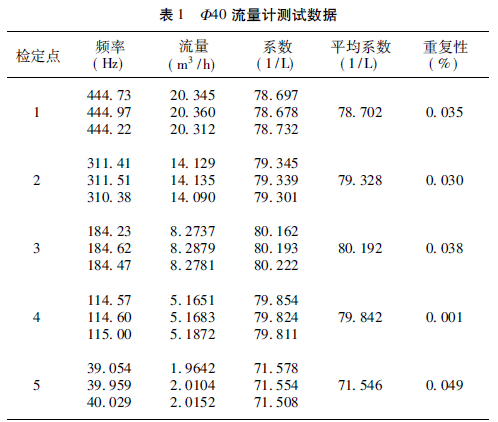儀表線(xiàn)性: 5. 7%。依據(jù)表2 測(cè)試數(shù)據(jù),經(jīng)計(jì)算可得,Φ25 流量計(jì)測(cè)試結(jié)果如下: