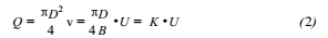 式(1)說明,導(dǎo)體在磁場內(nèi)作切割磁力線運(yùn)動(dòng),導(dǎo)體兩端產(chǎn)生的感應(yīng)電動(dòng)勢的大小與磁感應(yīng)強(qiáng)度B成正比,與導(dǎo)體的長度D成正比,與導(dǎo)體運(yùn)動(dòng)的速度v成正比。由式(2)可知液體的體積流量與感應(yīng)電動(dòng)勢成正比,這就是生活廢水流量計(jì)的設(shè)計(jì)原理。