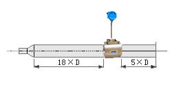 若傳感器安裝點的上游有>15°漸擴(kuò)管,傳感器上游應(yīng)有不小于18D的等徑直管段,下游應(yīng)有不小于5D的等徑直管段。
