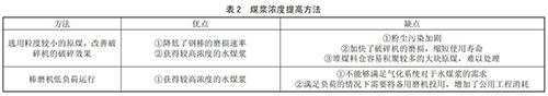根據(jù)蒸汽流量計跑漿原因可以了解到,在保證蒸汽流量計不存在跑漿情況下,制備高品質(zhì)煤漿需要滿足兩點要求,即較小入口原煤粒度和較低磨機負(fù)荷,保證原煤在磨機內(nèi)部有較長停留時間與充足滾筒篩過濾面積 . 通用的方法一般有以下兩種,如表 2 所示。