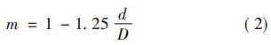 式中: 珋v 為旋渦發(fā)生體兩側(cè)平均流速,m / s; d 為旋渦發(fā)生體特征寬度,m; Sr 為斯特勞哈爾常數(shù),無量綱常數(shù); V 為管道流體平均流速,m / s; m 為旋渦發(fā)生體兩側(cè)弓形面積與管道截面積之比。 如,對于寬度為 d 的三角柱,有: