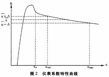 圖2顯示測(cè)量出電脈沖信號(hào)頻率F用平均儀表系數(shù)`K計(jì)算得到的Q值,在Qmin~Qmax范圍內(nèi)的*大相對(duì)誤差為:
