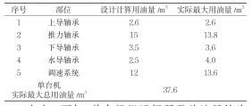 該水電廠于2013年5月至6月完成全廠4臺(tái)機(jī)組的投產(chǎn)運(yùn)行。在機(jī)組檢修期間復(fù)核計(jì)算、統(tǒng)計(jì)每臺(tái)機(jī)組實(shí)際用油量如表1所示。
