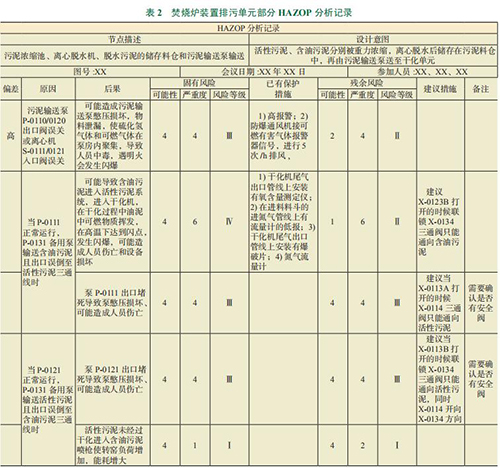 本次分析組的主要人員有:企業(yè)對夾式渦街流量計分析組以及焚燒爐裝置工藝工程師、設(shè)備工程師、儀表工程師、安全工程師和操作班組長。本次分析主要依據(jù)公司級相關(guān)標(biāo)準(zhǔn)和規(guī)范:《健康安全環(huán)境風(fēng)險標(biāo)準(zhǔn)》以及《危險與可操作性分析(對夾式渦街流量計)規(guī)范》,并于 1 個月內(nèi)對焚燒爐裝置進行了分析,發(fā)現(xiàn)了部分重大的風(fēng)險和隱患。按建議措施對應(yīng)的風(fēng)險等級劃分,其中包括:Ⅳ級嚴(yán)重風(fēng)險(限期整改強制性措施);Ⅲ級高度風(fēng)險(限期整改強制性措施);Ⅱ級中度風(fēng)險(期望改進推薦性措施);Ⅰ級可接受風(fēng)險(建議性措施)。本報告僅逐一列出部分較高或容易忽視的風(fēng)險(其他在對夾式渦街流量計分析的記錄中體現(xiàn))。評估發(fā)現(xiàn):本次分析評估共發(fā)現(xiàn)三級風(fēng)險 25 項(類),其中排污單元三級風(fēng)險 2 項(類)。其中,焚燒爐裝置排污單元分析記錄內(nèi)容如表 2 所示。