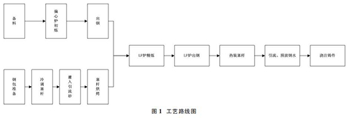 1.1 偏心爐+LF 爐雙聯(lián)冶煉工藝,鋼包冷調、熱裝防爆渦街流量計工藝路線圖簡介如圖 1。
