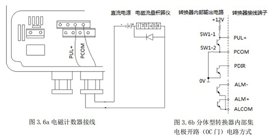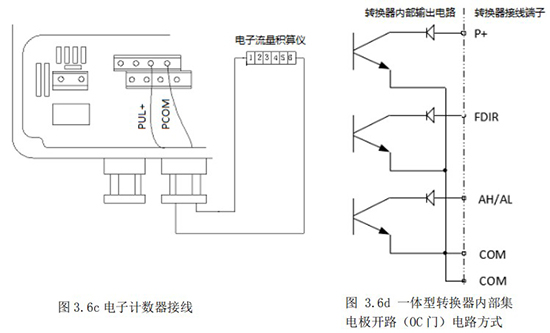 3.4.5 頻率(脈沖)、上下限報警、流向標(biāo)示等輸出均為集電極開路的電平輸出信號。