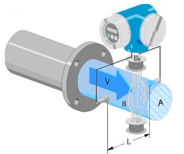 式中 K 、 d 為常數(shù),由于勵磁電流是恒流的,故 B 也是常數(shù),則由 E=KBdv 可知,流體流量 Q 與電壓信號 E 成正比,即流速感應(yīng)的信號電壓 E 與體積 Q 成線形關(guān)系。因此只要測量 E 就可以確定 Q ,這就是污水流量表的基本原理。
