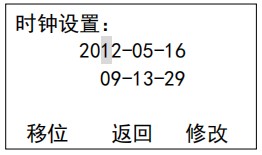 設(shè)置界面 17:時鐘設(shè)置,校準當(dāng)前運行的日期和時間,此參數(shù)出廠時已校準,時鐘設(shè)置影響數(shù)據(jù)計算,在運行前務(wù)必設(shè)置成當(dāng)前日期,如錯誤將造成記錄保存混亂。