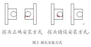 d.探頭安裝時(shí)要注意方向。該廠流量計(jì)一度頻頻歸零,起先找了很多原因,如給流量計(jì)井做防水,更換耦合劑等,但是效果并沒有大的改善。結(jié)果是雖然頻頻更換耦合劑,但二次表中信號(hào)強(qiáng)度*好僅能達(dá)到44dB,且信號(hào)強(qiáng)度不穩(wěn)定,浮動(dòng)較大,導(dǎo)致流量不夠準(zhǔn)確。有時(shí)甚至涂抹一次耦合劑只能正常顯示數(shù)據(jù)一天時(shí)間。后來(lái)發(fā)現(xiàn)一個(gè)探頭在兩根鋼帶內(nèi)側(cè),另一個(gè)探頭在兩根鋼帶外側(cè),而兩個(gè)探頭應(yīng)該同在兩根鋼帶內(nèi)側(cè),如圖2所示。錯(cuò)誤安裝方式的結(jié)果是聲波信號(hào)接收效果不好。將安裝方式更改之后,信號(hào)強(qiáng)度*好能達(dá)到70dB,并穩(wěn)定在60-70dB之間,從而保證了流量數(shù)據(jù)的準(zhǔn)確性。