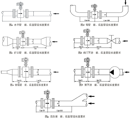 插入式進口直管段應≥ 20 D , 出口直管段≥7D(D為傳感器公稱口徑)。